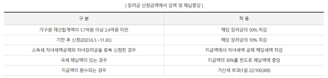 - 가구원 구성에 따라 '22년 부부합산 총소득금액이 기준금액 미만이어야 합니다. 장려금 산정은 총급여액에 따릅니다.