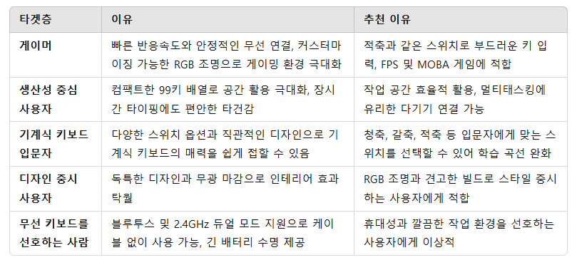 주요 타겟층: AULA F99 기계식 무선 키보드 V3는 누구에게 적합할까?
