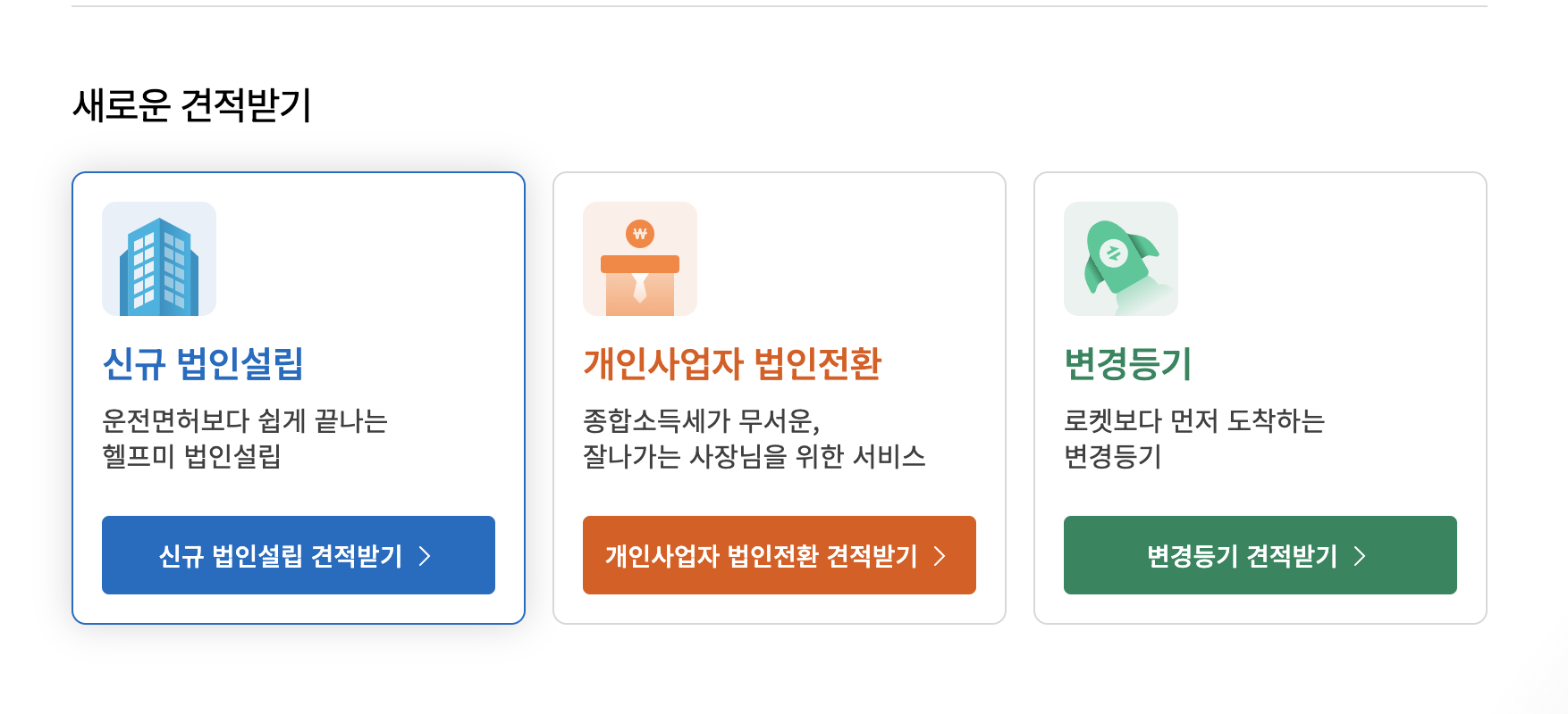 - 법인 설립 견적서 신청: 견적서를 신청하면, 카카오톡 및 이메일로 견적서가 발송됩니다. 이를 통해 법인 설립 비용을 미리 확인할 수 있습니다.