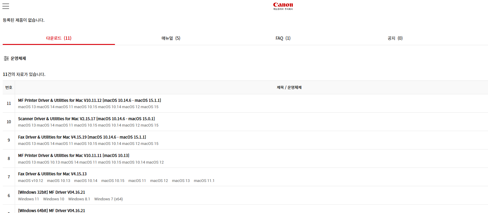 캐논 공식 웹사이트에서 드라이버 다운로드