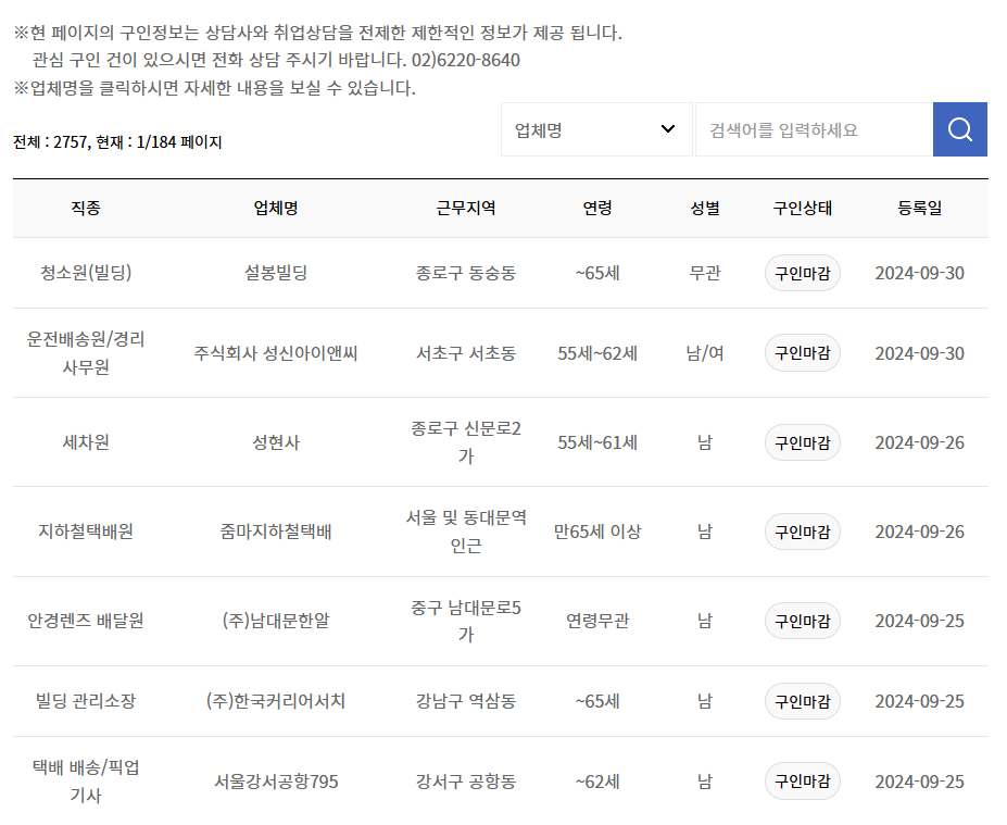 60세 이상 일자리 찾는 방법, 채용 홈페이지 안내
